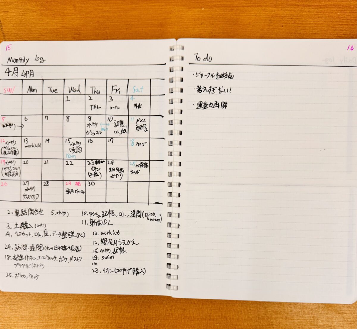 そんなご本人様から最近のスケジュール管理についてもお伺いすることが出来ました。なんでもご本人様は今までスケジュール帳への苦手意識が拭えず、市販のスケジュール帳等について「市販のスケジュール帳は使い勝手が悪い」という認識をお持ちだったとか。ところが仕事が板につき、プライベートや趣味活動も充実したものに変化する中で、頭の中のみの管理では整理がしにくい現状を目の当たりにしたとのこと。そこでYouTubeで見つけた